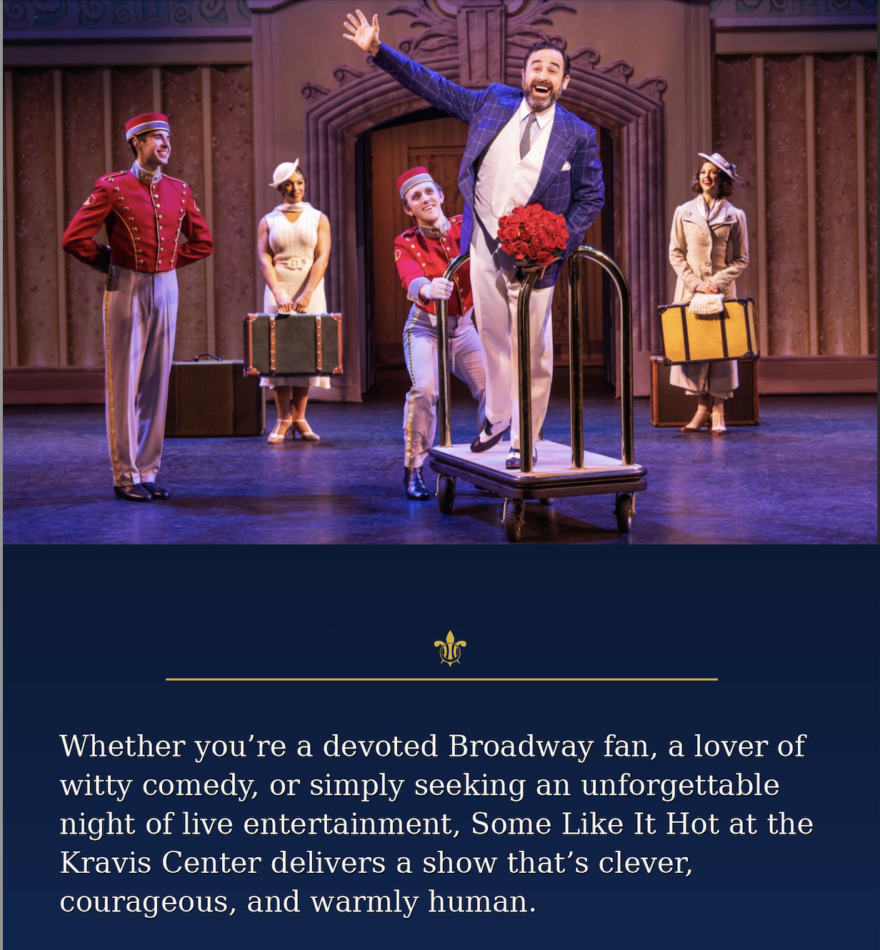 Whether you’re a devoted Broadway fan, a lover of witty comedy, or simply seeking an unforgettable night of live entertainment, Some Like It Hot at the Kravis Center delivers a show that’s clever, courageous, and warmly human.