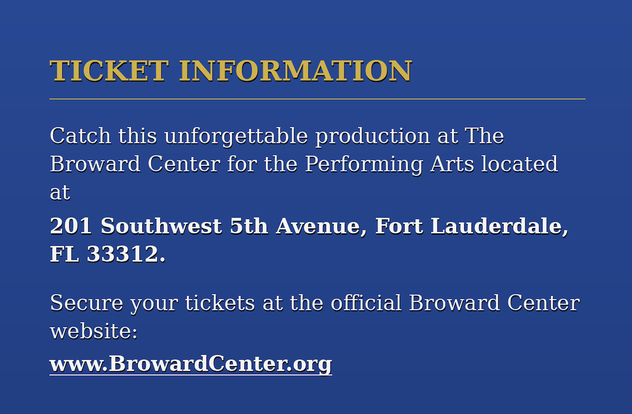 👉 Catch this unforgettable production at The Broward Center for the Performing Arts located at